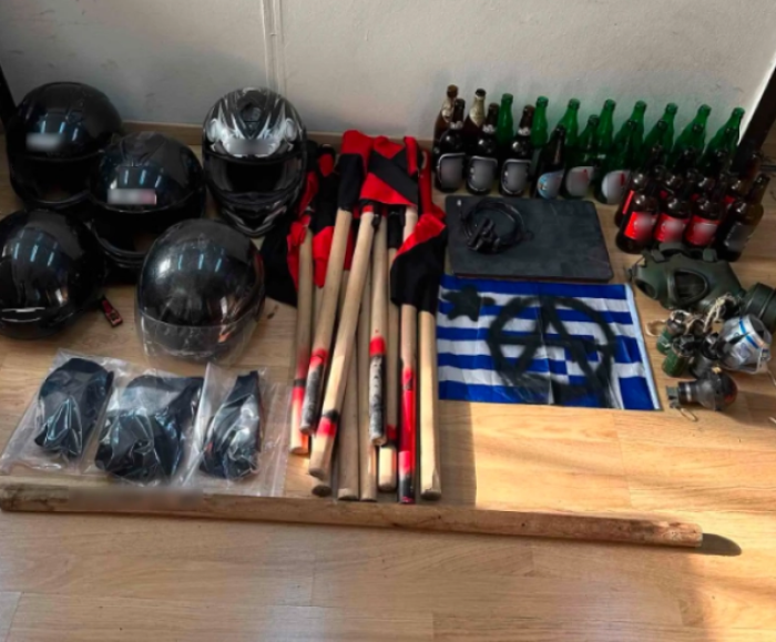 При проверката на студентските домови, како што соопштија од полицијата, биле пронајдени и одземени: 27 празни пивски шишиња, 11 палки, четири шок бомби, два солзавци, пет шлемови, гас маска, маски за лице од типот „full face“, лаптоп, камера, запалено грчко знаме, ракавици, како и голем број рачно напишани белешки со анархистичка содржина.