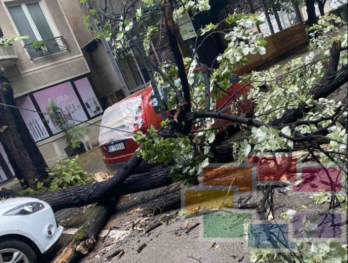 Во попладневните часови на улица „Ленинова“ во Скопје дрво паднало врз автомобил.