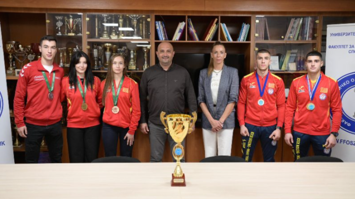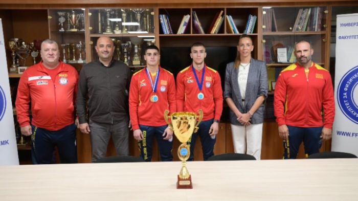 Денес на Факултетот за физичко образование, спорт и здравје, деканот проф. д-р Влатко Неделковски и продеканот за настава проф. д-р Андријана Мисовски ги пречекаа студентите – победници на Европскиот универзитетски шампионат во боречки спортови, кој се одржа во Варшава, Полска (22–25 август 2025 година).