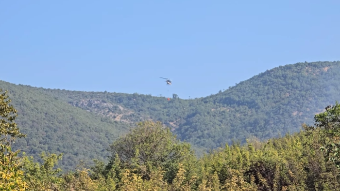 Хеликоптер вклучен во гаснењето на пожарот кај Дојран, ер трактор над фабриката Самоков