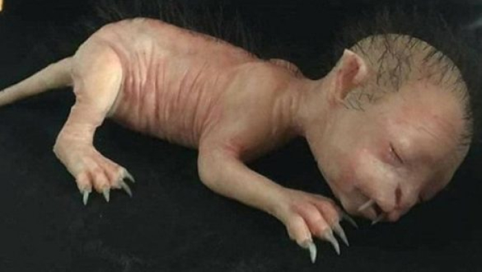 Мачката има глава која наликува на човек, а на врвот дури има и црна коса.